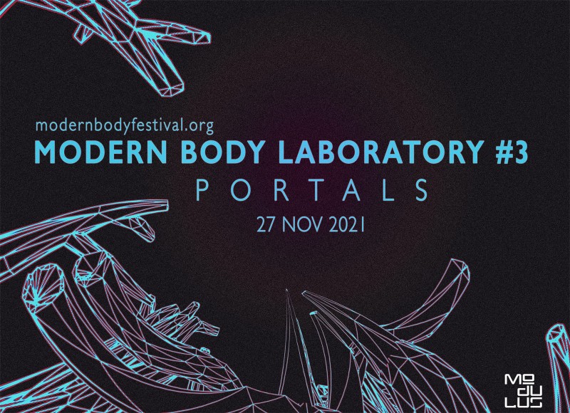 "For more than a year we have been balancing on a threshold, at the precipice of something we cannot quite grasp, bracing ourselves to cross to some other side. We have a looming, collective sense of exiting the known and heading somewhere else; maybe this will be a radically different world, or maybe it will be exactly the same; maybe it will be a world with sweeping changes or one with small differences that barely matter; a step towards utopia or a plunge into dystopia. As we find ourselves crossing through this portal, we take a moment to hover in the nebulous spaces it offers, to gaze into some of the darkest voids and brightest rays of what is possible, to look into the past, the present, and the future, into realities and hypotheses, into lived experiences, empathic sensations, and thought experiments. For this third Modern Body Laboratory edition we present works that act as portals, transporting us to spaces, situations and vantage points that offer new perspectives, new visions, and new experiences, enabling us to reflect on the inertial forces of this collective hyperbody we all inhabit together – what we call humankind."